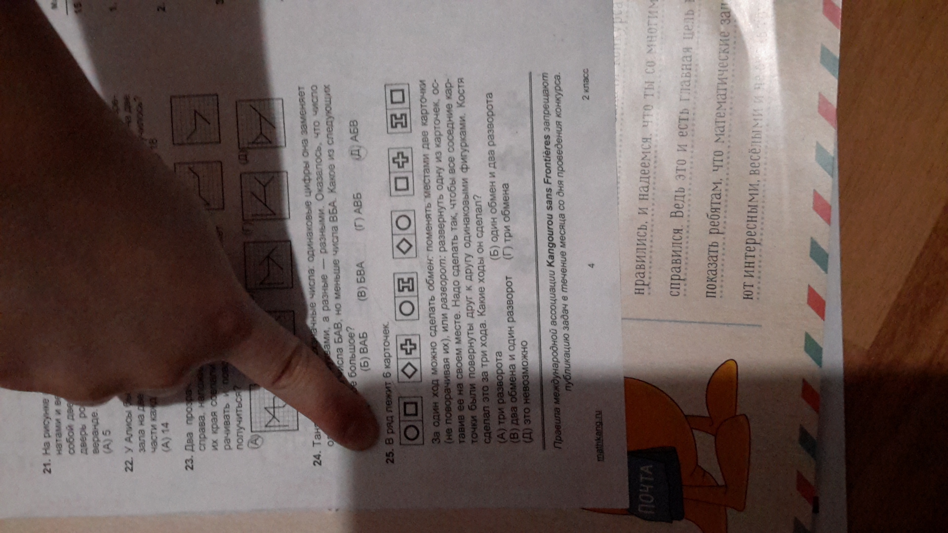 Ищете помощь с задачей по Помогите пожалуйста по номеру 25 лет лежат 6 карточек Как надо делать? Узнайте, как решить задачу для школьников 1 - 4 класс и читайте обсуждения от других участников. Ответы уже опубликованы. Не забывайте, что вы можете задать свой вопрос или стать экспертом, помогая другим пользователям.