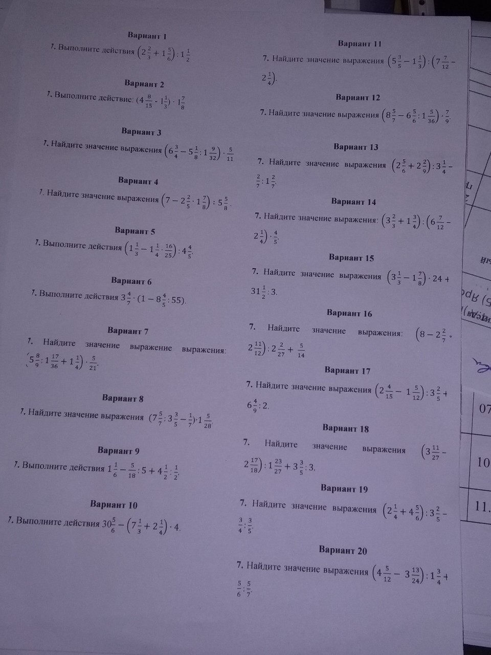 16. .=(8 — 16/7 * 35/12) * 27/56+5/14=(8 — 20/3)*27/56+5/14=(8-6 2/3)*27/56+5/14=1 1/3 * 27/56+5/14=4/3 * 27/56+5/14=9/14+5/14=14/14=1