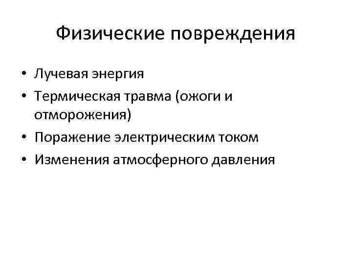 Такі пошкоджуючі чинники, як холод, електрика, радіоактивне випромінювання, полум’я, називаються: