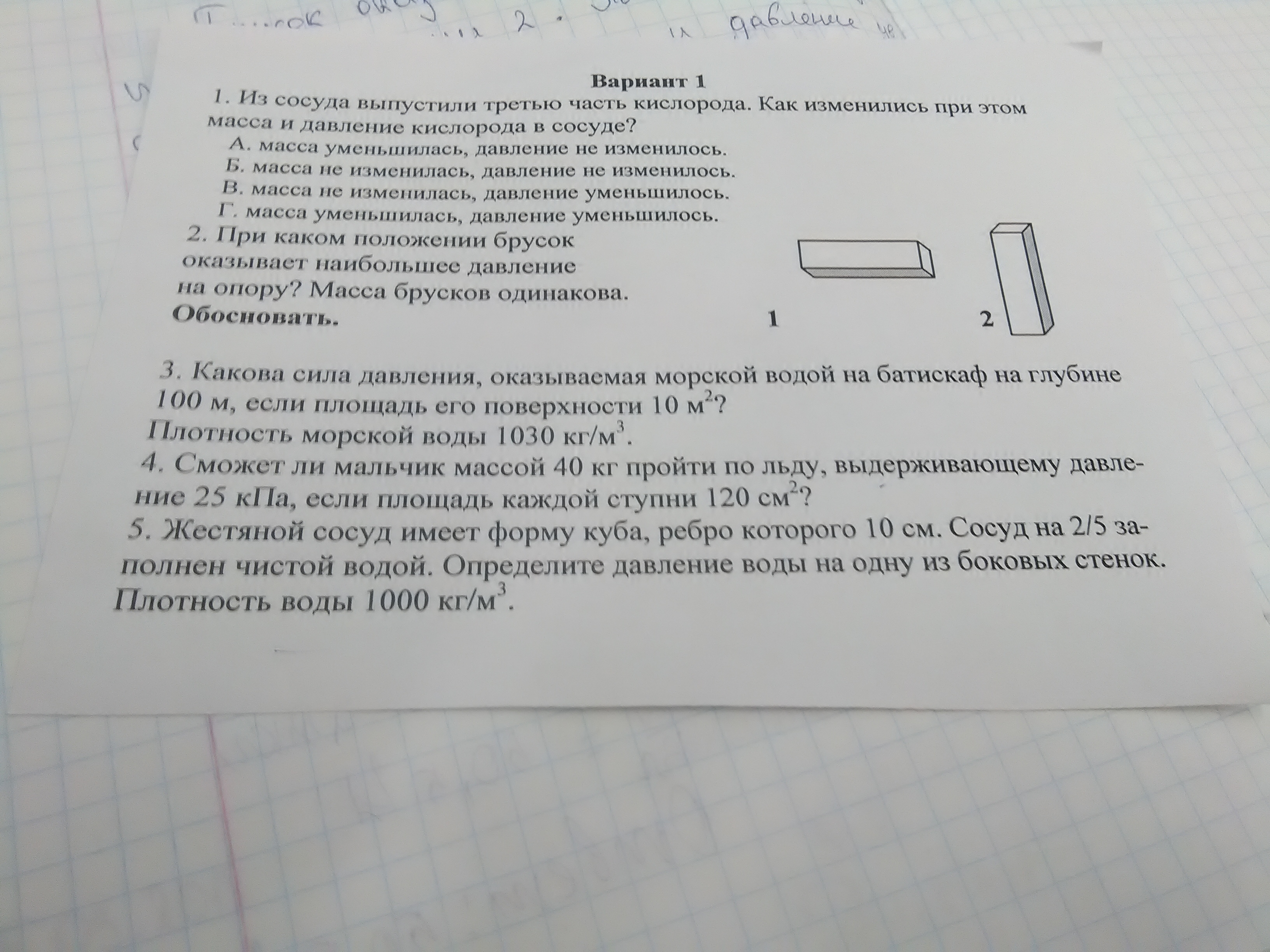 2. 2 , т.к давление зависит от площади опоры. Чем меньше площадь, тем больше давление.