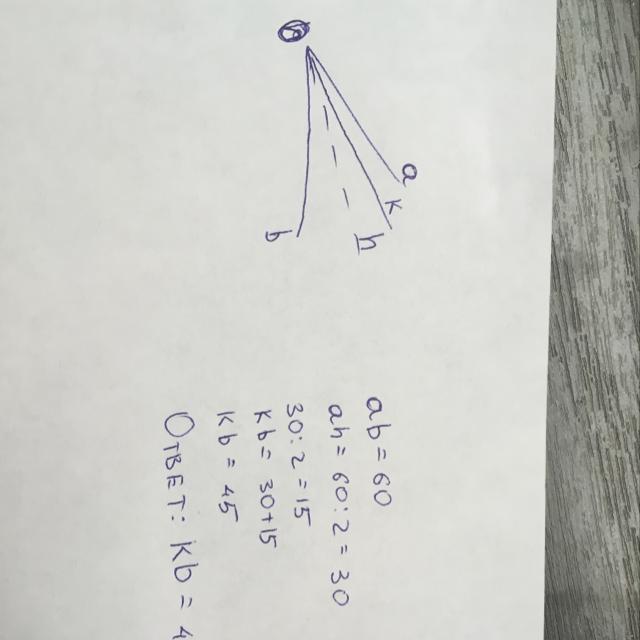 луч h биссектриса угла ab Луч к биссектриса угла ah. Найдите угол вк если ав=60