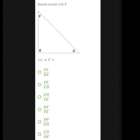 Нужны ответы на задачу по Вырази косинус угла F(на фото)? Читайте множественные решения и рекомендации от участников. Ответы на этот вопрос [Наличие ответов: если есть ответы, то 'уже доступны', если нет — 'пока нет']. Присоединяйтесь к нашему сообществу, задавайте вопросы и делитесь своим опытом с другими.