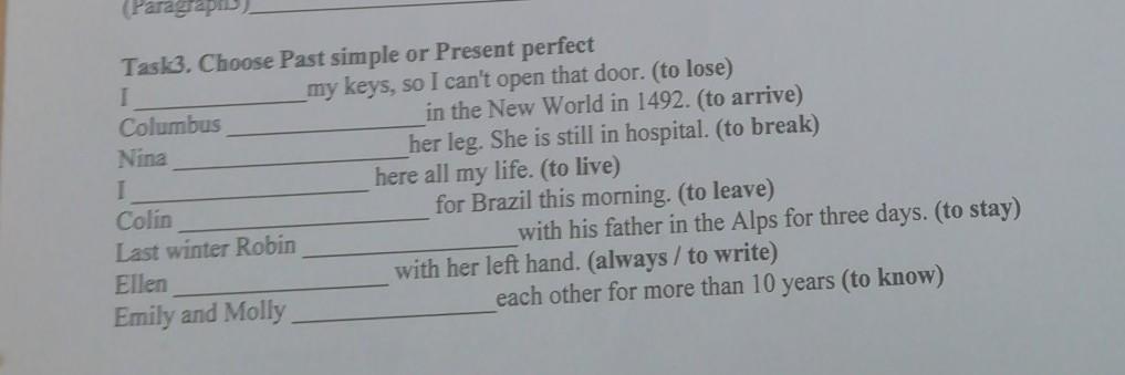 1. Andy is tired because he 2. By 1960 most of the Britain’s old colonies (WORK) 7 days a week. (BECOME) independent. 3. David broke his leg when he (SKI) last week. 4. 5. you (HAVE) a nice time in Rome during your last holiday? (FINISH) your homework yet? you 6. He 7. For how long (WORK) at his computer for the last 6 hours. she (HAVE) her car? 8. How many people 9.1 (NOT/KNOW) much about art, but I like some artists. 10. I 11. I 12. Tom and Sam 13.1 14. She (DIE) in the fire yesterday? (WAIT) for ages. At last, the bus arrived. (RECEIVE) a postcard from Jane yesterday. (play) soccer next Sunday. (NEVER/BE) sailing, what is it like ? (RIDE) her bike in the park at the moment. 15. It (RAIN) when I got up. 16. Janet (HAVE) a great time in N.Y. at the moment. 17. Nelly 18. She was cooking dinner when we 19. She 20. My friends (ARRIVE). (COME BACK) from the cruise in a week. (BE) free for most of the evening. 21. The children were tired because they (START) a new job last September. (SWIM) all afternoon. 22. We (USUALLY/SPEND) Xmas with grandma. 23. He (NOT/LIKE) carrots. 24. you (VISIT) Alice yesterday? 25. Luis (COME) to the party tonight? 26. your mom (USUALLY/PICK) you up at school?