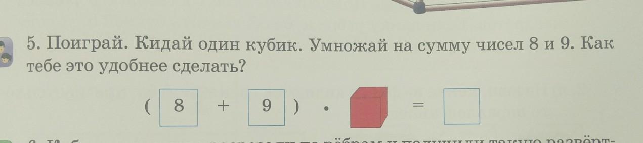 Ответ: удобнее число, выпавшее на кубике умножить на 8, потом число, выпавшее на кубике умножить на 9, а затем результаты умножения сложить.