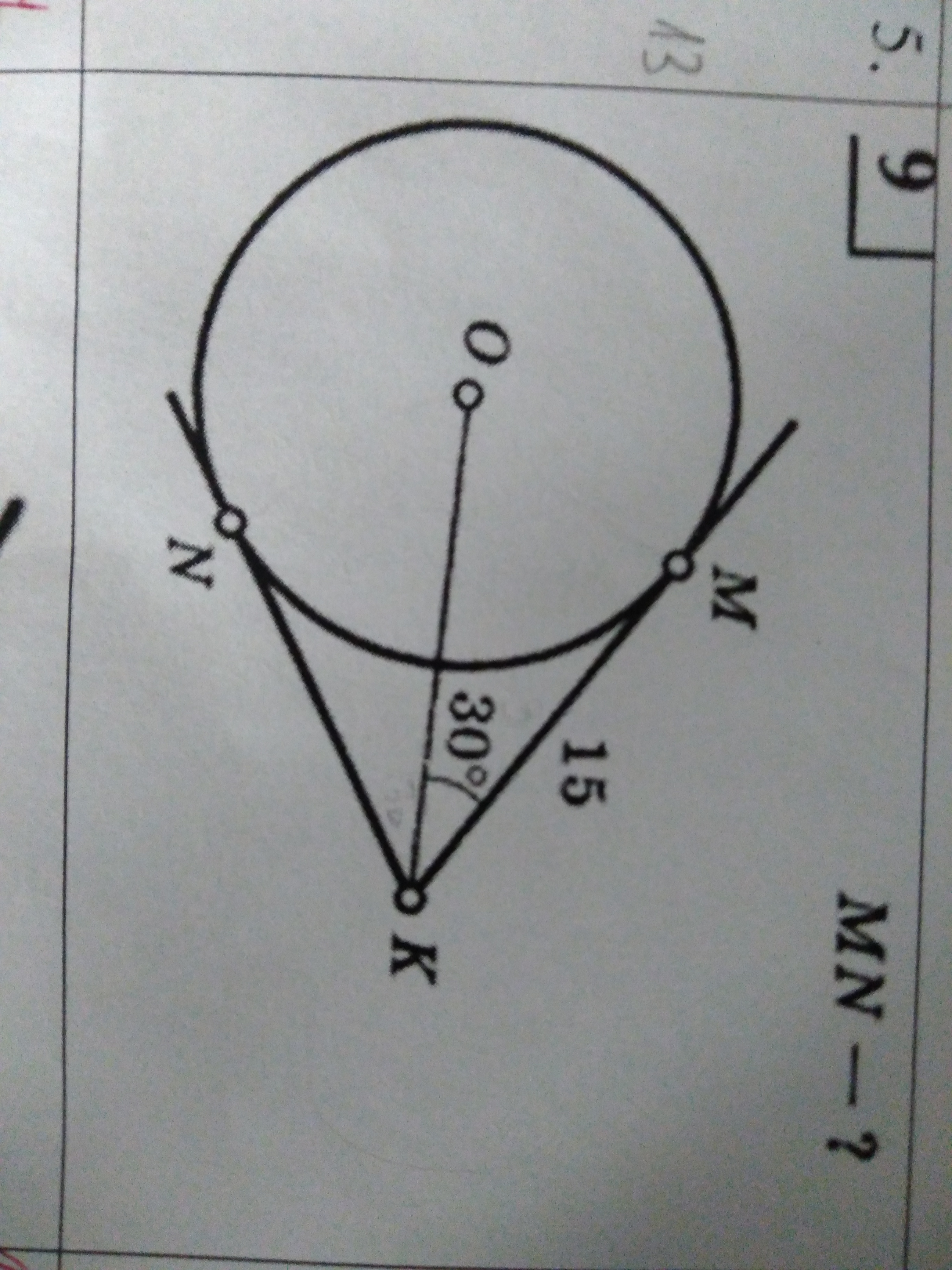Значит ∆OKM =∆OKN, следовательно <MKN=60°. <KMN=<KNM=(180-60)/2=60°.
